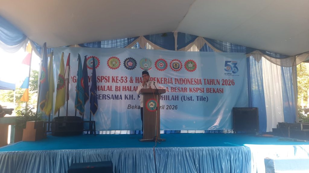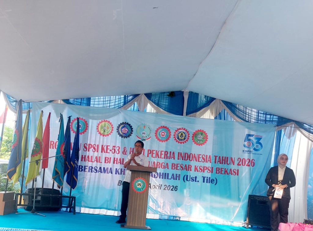 DPK APINDO Kabupaten Bekasi yang diwakili oleh Bp. Ponidi, S.E., S.H. dan Bp. Tatang Suryaman, S.H. menghadiri undangan acara Dirgahayu SPSI, Peringatan Hari Pekerja Indonesia ke-53, sekaligus Halal Bi Halal Keluarga Besar KSPSI Bekasi pada 3 April 2026.
